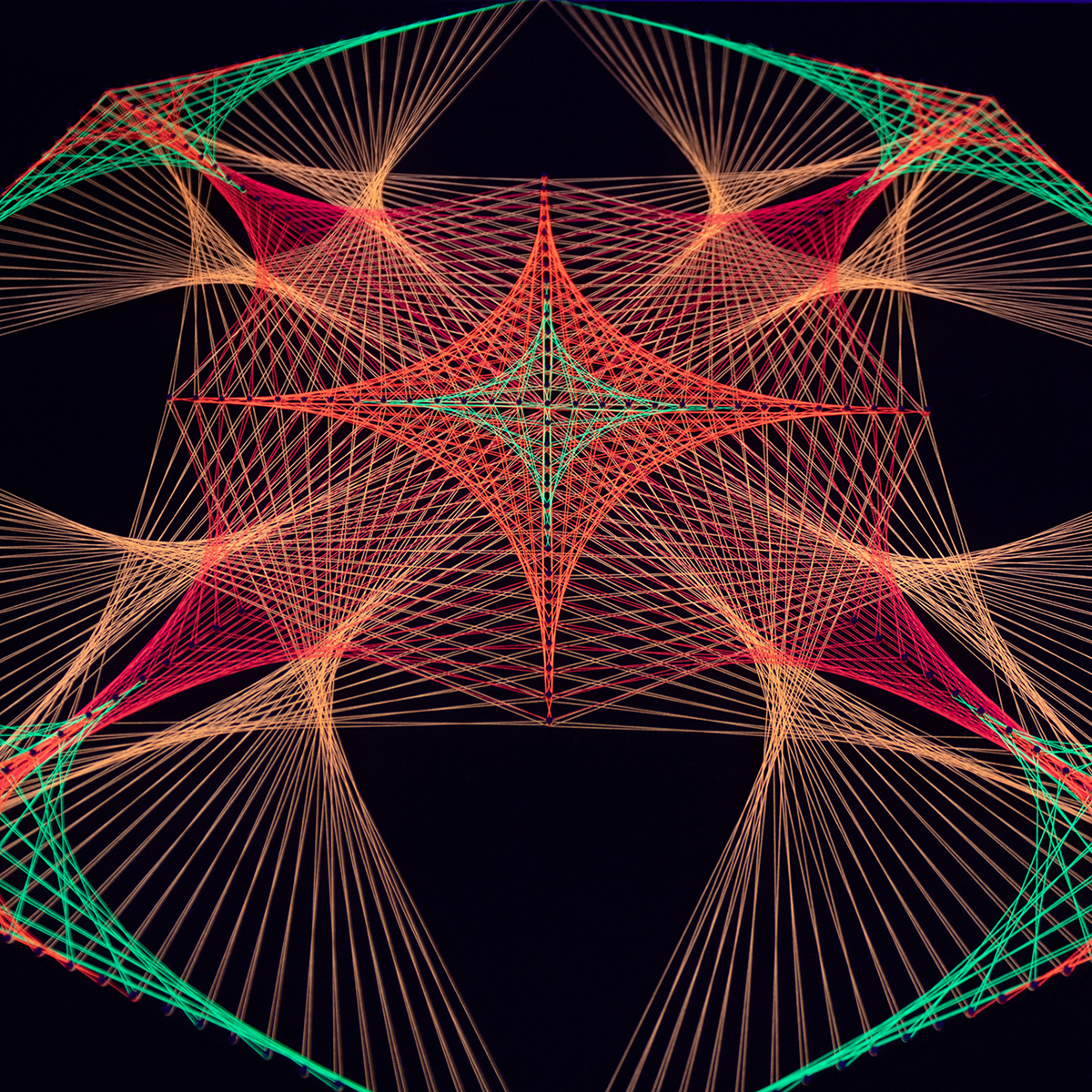 El uso de hilos flúor de alta calidad potencia la luminosidad y el contraste del diseño, especialmente bajo luz LED o luz negra, donde los tonos vibrantes cobran un protagonismo impresionante. Este acabado lo convierte en un cuadro ideal para espacios creativos, estudios, ambientes modernos o lugares donde quieras transmitir dinamismo y movimiento.